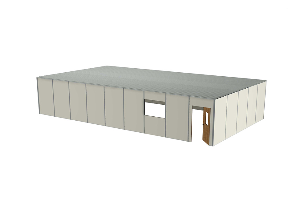 This office design is 36' x 20' and includes a door, fourteen lights, a drop ceiling and a used dust cover kit. The door can be placed anywhere you like. Windows and additional doors are sold separately. We can provide an AC cut out if needed. These offices are modular and ideal for warehouses and industrial settings. They are an affordable option for clean warehouse office space in your business. Call our sales team for more information and start designing your inplant office today.