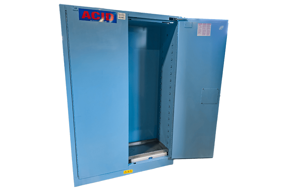 Acid storage cabinets are an essential safety solution designed to securely store corrosive acids and other hazardous chemicals. Its primary benefits include preventing corrosion of surrounding infrastructure, containing potential spills or leaks through resistant materials and spill trays, and protecting personnel from harmful fumes with integrated ventilation. The high-visibility powder-coated finish ensures passersby are aware of the presence of hazardous materials, and the lockable, self-closing double doors offer peace of mind knowing corrosive materials are never left unattended and unsecured. These cabinets also promote organized chemical management, reducing the risk of accidental mixing. Typical applications are found in industrial workplaces, educational and research laboratories, manufacturing facilities, and any setting where concentrated acids are used, ensuring compliance with workplace safety regulations (OSHA, NFPA) and maintaining a controlled, safer environment.
