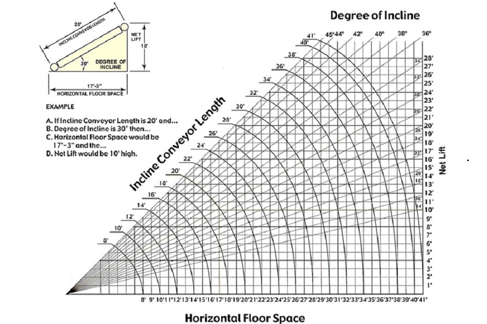 Used floor to floor incline conveyor can be extremely useful when designing your conveyor system. We have both slider bed and belt over roller conveyor for building your floor to floor system. They will have a feeder at the bottom and a nose over at the top to ease transition on and off the incline. The maximum angle is 30 before cleats will be needed for your conveyor. CAD and rendering conveyor drawings can be done in house at no charge with your quote. If you have a mezzanine or other elevated surface this type of conveyor is perfect for you. Learn more by calling our sales team today. We have been in the business of selling used floor to floor incline conveyors since 1991 and ship nationwide, and can provide an installation quote as well.