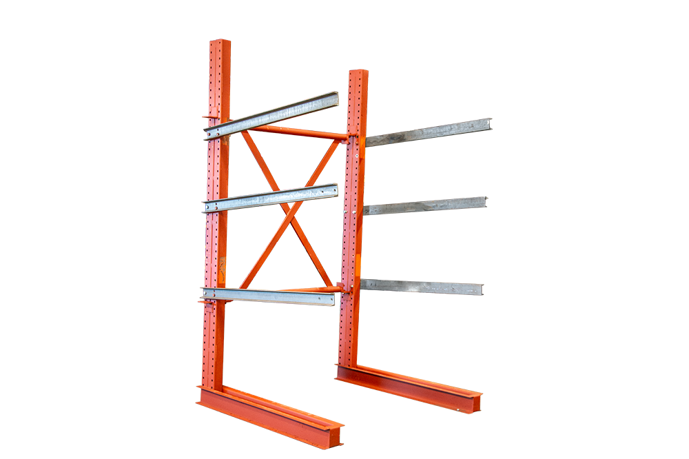 Light Duty Cantilever Rack is our value line of cantilever racking systems, offering our most affordable way to install a durable cantilever rack system in your facility. They are the perfect choice if the material you will be storing is not especially heavy. The I-Beam material used in our Light Duty line offers the same durability you would expect from our more robust lines of I-Beam style cantilever rack. The continuous, uninterrupted design of a cantilever rack system makes them ideal for storing long items that may not fit very well on a traditional pallet rack, such as pipes or lumber.